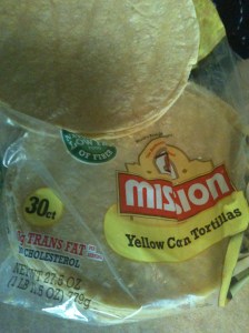 Okay so first, let’s get out these corn tortillas. I use Mission Corn Tortillas (see below). I’m not even going to post an “Ingredients” section for the chips because it’s literally tortillas, olive oil, and salt. Pre-heat the oven to 350 degrees.