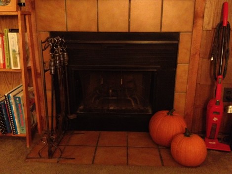 Here is our lovely fireplace, complete with ready-to-go pumpkins and a fireplace set Chris picked up from a garage sale. Cannot wait until the weather gets cold and we constantly have a fire to cozy up the apartment!