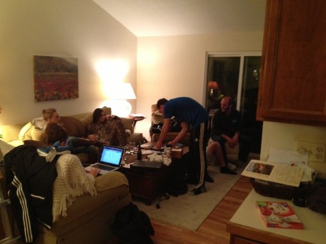 Once there, I found Megan (my cousin) already preparing her wild-caught fish tacos. It was a big project, but she used top-notch ingredients, even made her own aioli chipotle sauce. She battered them in panko breadcrumbs, turned out absolutely fabulous. Fred, her boyfriend, and his brother made a top notch cole-slaw that would go on top. And then my guacamole on top of that. It was amazing. Seriously. Better than any taco place can give out. Just LOOK at it.