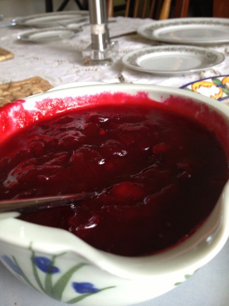 Mum’s homemade cranberry sauce, from stewed cranberries and sugar